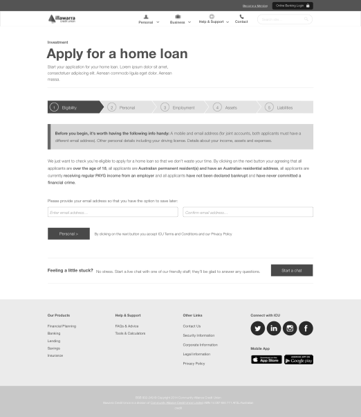 Illawarra Credit Union created a new range of products to feature on the new website. They wanted to drive sales of the home loans, therefore they wanted the application process to be re-designed.