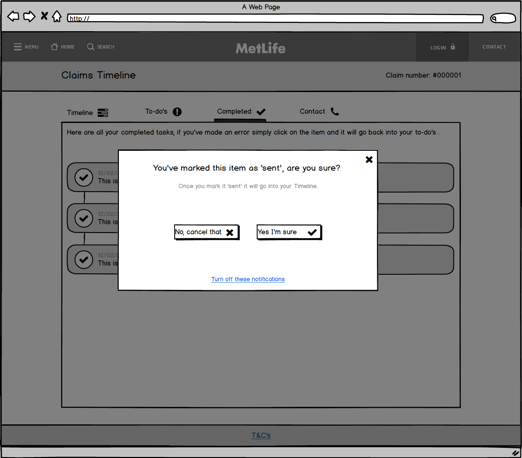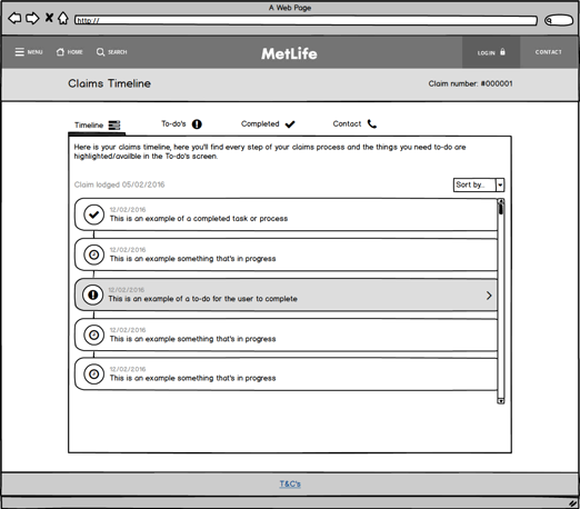 One of the hardest challenges as a UX designer was working out how the Claims Tracker would fit into Metlife's legacy systems. Working with old technologies really limits the capabilities of how we present information to the customer.